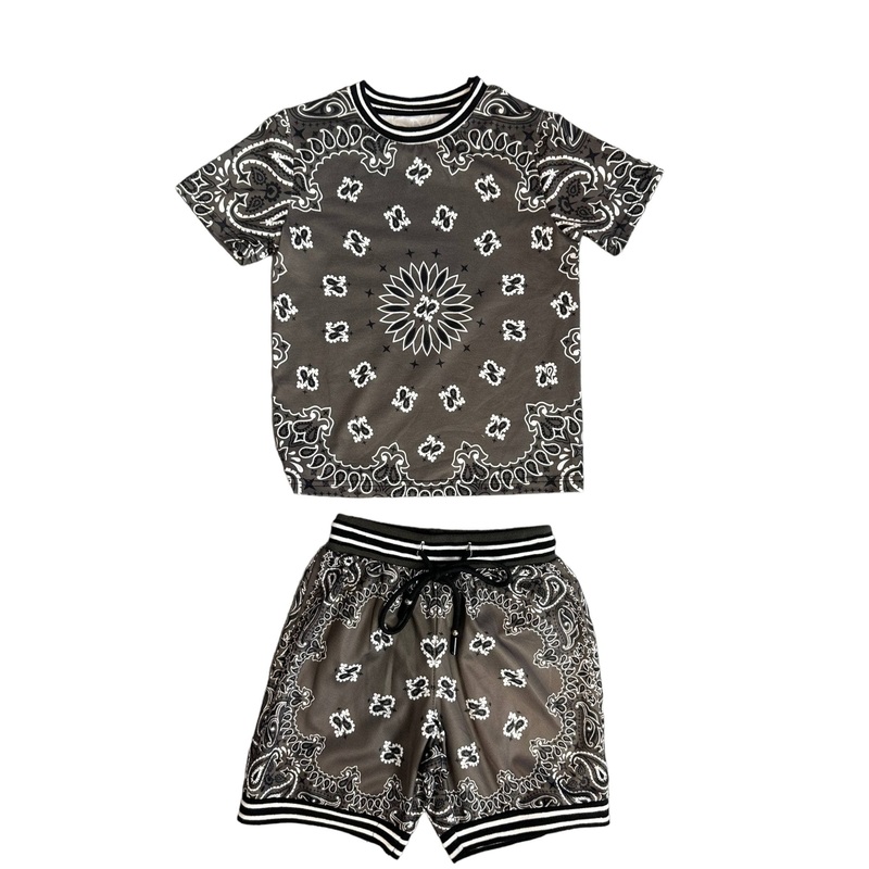 Description:Stylish two-piece set featuring a bold bandana print for a trendy look.Comfortable T-shirt with matching elastic-waist shorts for an effortless outfit.Perfect for casual outings, vacations, or relaxed weekends.Material & Care:Crafted from breat