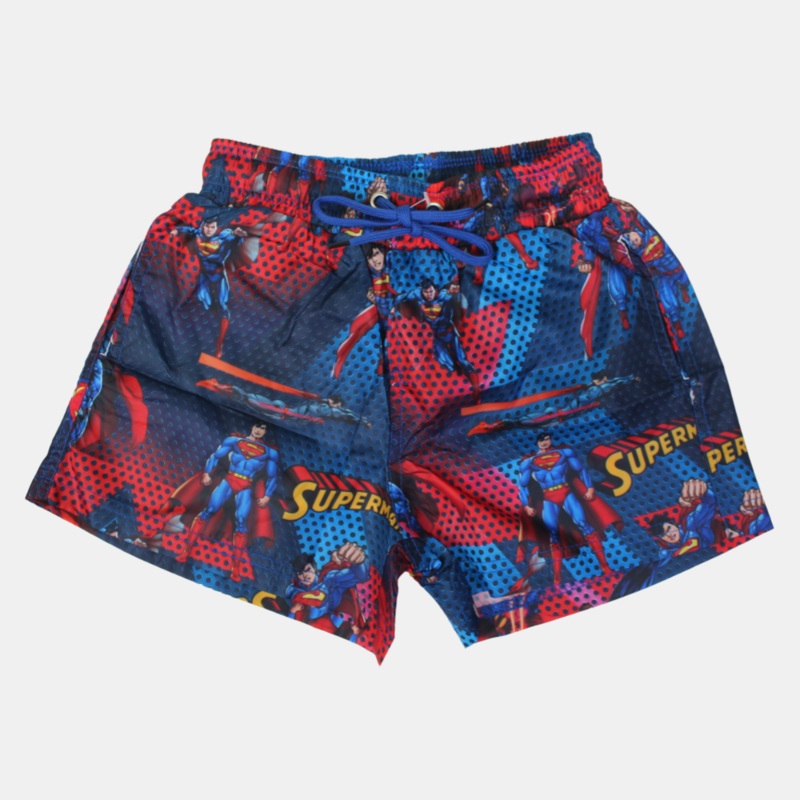 Bold, quick-drying, and perfect for little superheroes! These Superman-themed swim shorts are ideal for beach days, pool fun, and summer adventures.Made from durable, quick-drying polyesterComfortable elastic waistband for a secure fitIconic Superman desig