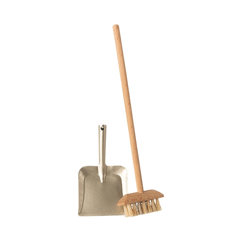 With this Miniature broom set, you are ready to clean up. The dustpan comes in a beautiful warm silver color together with the wooden broom. Fits best with micro Maileg friends.Made of metal and woodBroom measuresabout 6"