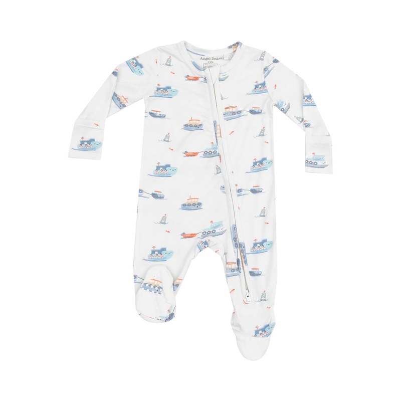 Discover the comfort of simplicity with this tugboat-covered 2-Way Zipper Footie from Angel Dear. The super stretchy and soft material (5% bamboo-derived viscose + 5% spandex) is gentle on your little one's skin. This footie keeps baby's skin safe and comf