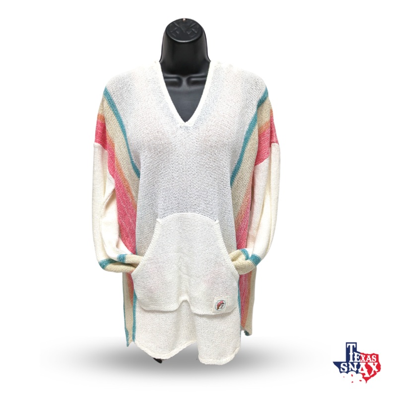 Stay toasty while turning heads! This Baja Stripe Hoodie, adorned with pink, orange, and blue stripes down the arms, is your go-to for those in-between weather days. With an oversized hood and a design inspired by our favorite mascot, it's the perfect blen