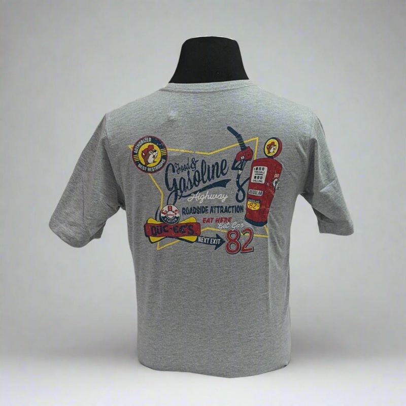 Fuel up in style with the Buc-ees Food & Gasoline Shirt! This classic tee proudly showcases the iconic Buc-ees logo along with a bold "Food & Gasoline" design, celebrating everyone's favorite road trip stop. Made from soft, breathable fabric, this shirt is
