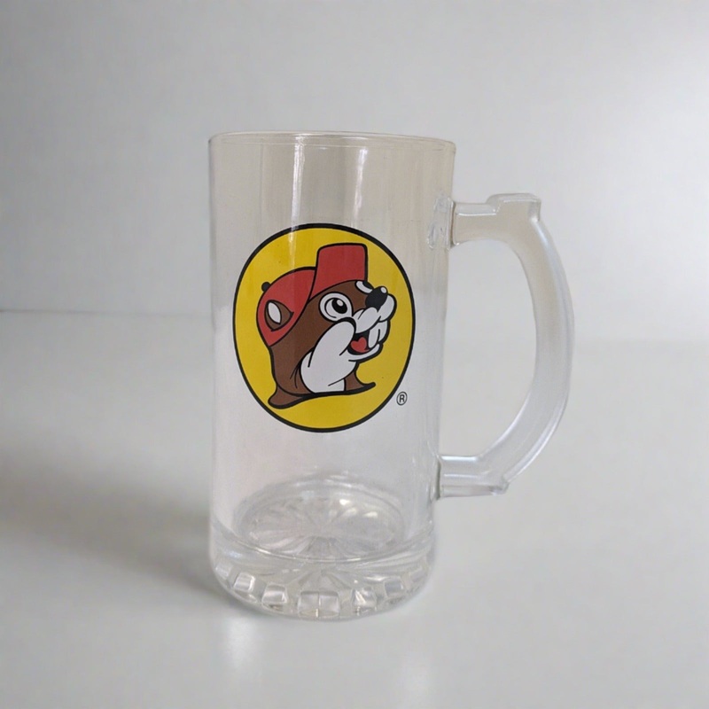 This clear glass mug features the Buc-ee’s logo, it holds 16 ounces of your favorite drink of choice, and it’s made of sturdy glass with a hefty handle.