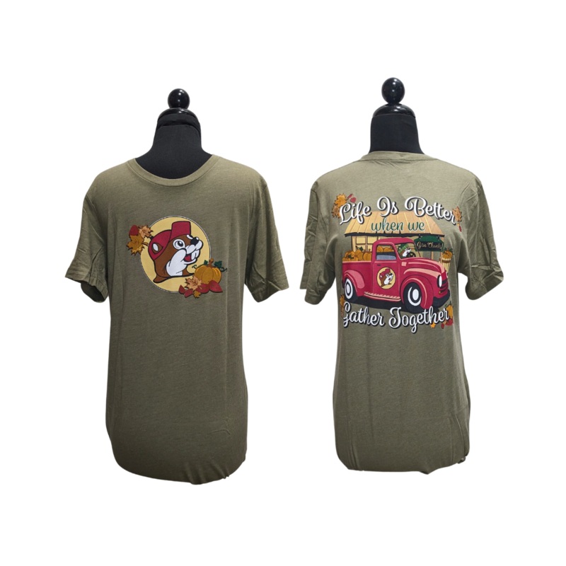 Gobble up in style with this 2023 Thanksgiving tee! Classic truck, iconic logo, and the heartwarming message: “Life is Better When We Gather Together.” All wrapped up in cozy seasonal colors!
