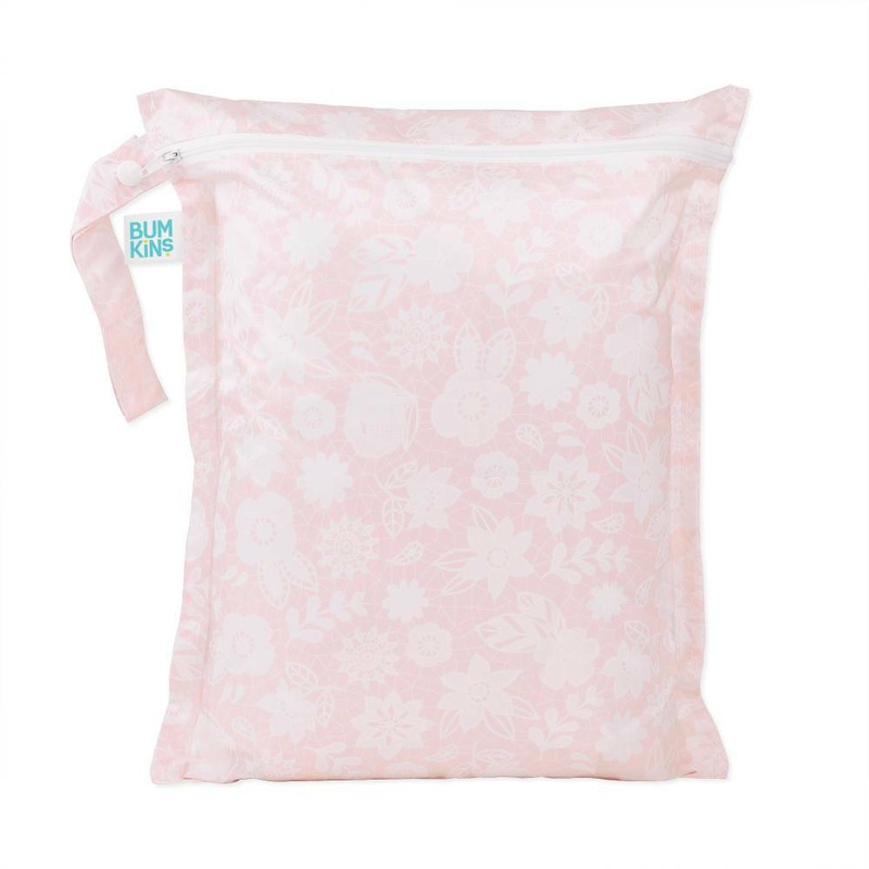 The better alternative to single-use plastic bags, the reusable Wet Bags are made from the same waterproof fabric as Bumkins award-winning SuperBib. These bags feature heat-sealed seams for true waterproof protection. A smooth zipper closure locks away the mess and single-ply construction means no worrying about icky stuff growing between layers of fabric. Wet bags are great for carrying diapers, dirty gym clothes and wet swimsuits. Not just for wet stuff these bags make excellent organizers for toys, accessories, toiletries, electronics, travel and more! With a snap handle, snap your bag wherever you need it stroller, changing table or suitcase. Bags are single compartment, non-gusseted, non-insulated and non-stretch.