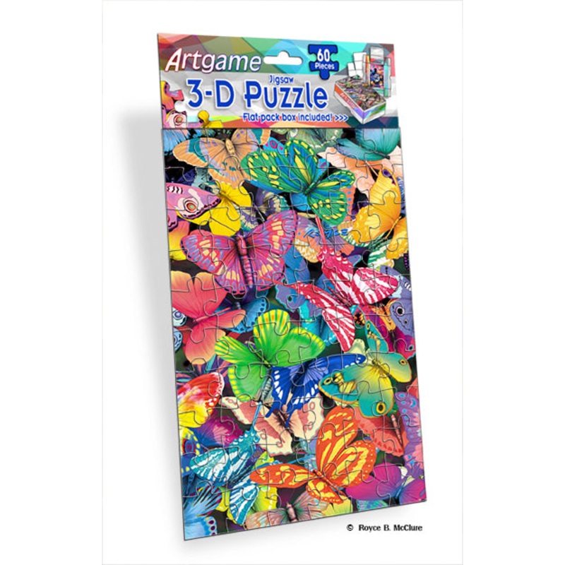 Keep little people happily entertained with a 3D puzzle from Artgame! Let them have the fun of assembling the 60 piece jugsaw puzzle to reveal the 3D image of brightly colored butterflies.