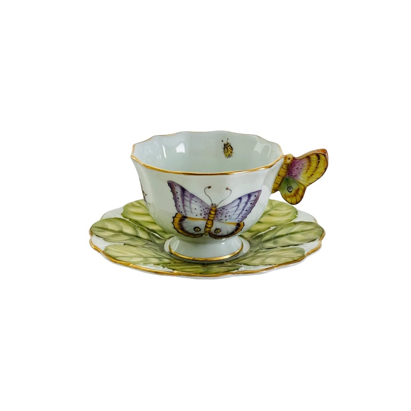 Inspired by 18th Century botanical illustrators, Hungarian designer Anna Weatherley creates hand-painted porcelain pieces to adorn the home, from dinnerware to stunning tablescapes. The Butterflies Handle Cup & Saucer in Multi adds a touch of elegance to a
