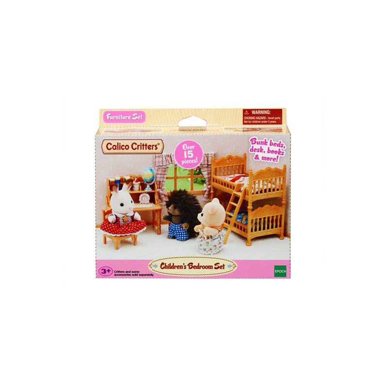 FeaturesCalico Critters Children's Bedroom Set, Dollhouse Furniture and AccessoriesIncludes over 15 pieces of furniture and accessories for dollhouse role play including two bunk beds with ladder, matching desk and chair and accessories including a globe,