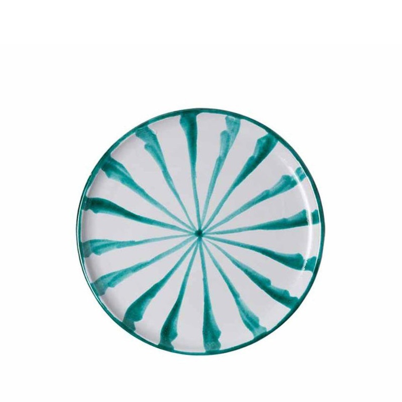 Hand-paintedwith a candy stripe, the Casa Verde Salad Plate is subtly striking and well-suited for dining, table decoration, or as wall decor. (There are two holes on the back that make for easy hanging.) Each Pomelo Casa piece is handmade in Southern Spain by ceramicists who have been using the same techniques for over five centuries and may have a slight variation in pattern as a result. Minor imperfections are not considered flaws but instead add to the authenticity and charm of these beautiful home goods.
