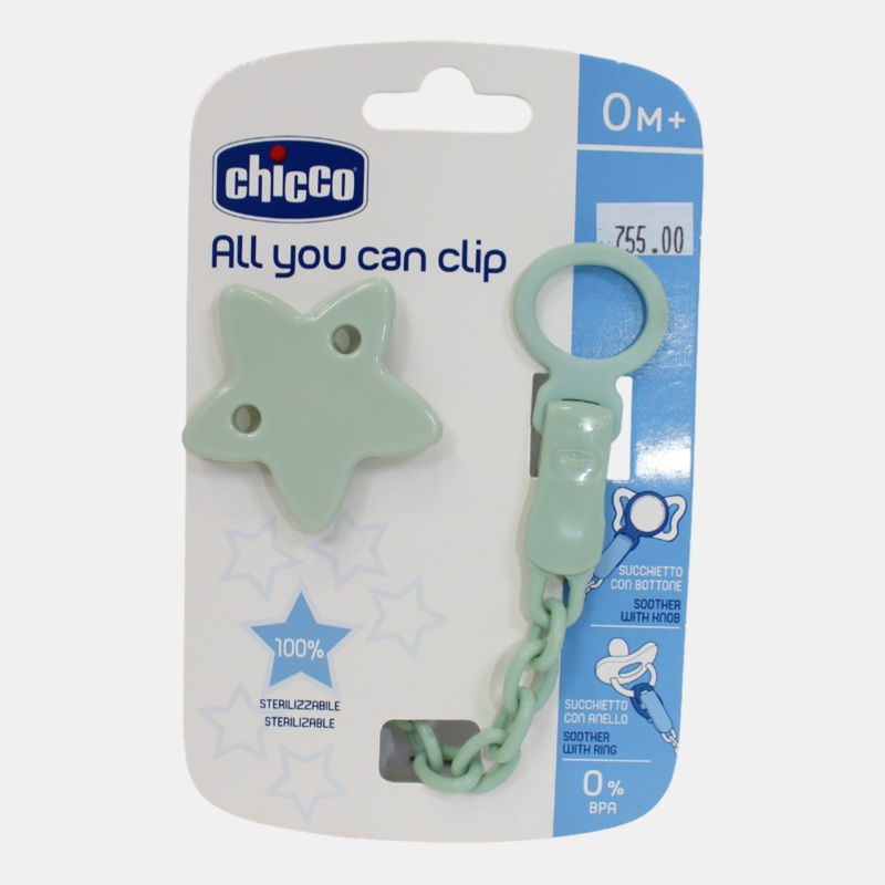 Keep your baby's pacifier within reach! The Chicco Pacifier Clip with Chain securely attaches to clothing, preventing pacifiers from falling or getting lost while keeping them clean and accessible.Durable clip for a secure hold without damaging fabricsLigh