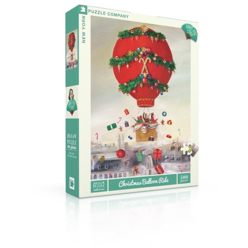 The Peppermint family takes a ride in a balloon ride tossing Christmas gifts over the edge.