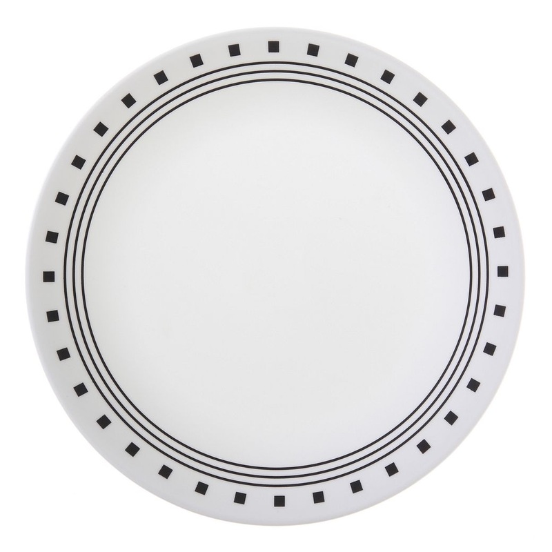 This City Block Luncheon Plate 1074211 features black stripes and bold squares, giving it an urban edge. A versatile design for salad, side dishes and dessert. The coupe shape has a casual, contemporary look that’s great for everyday and entertaining.