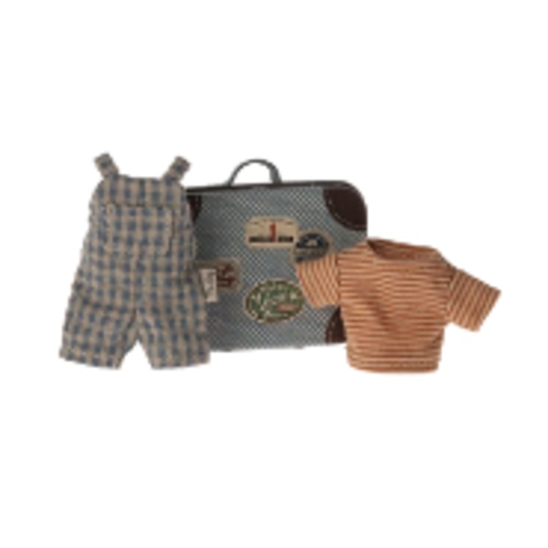 A lovely set of clothes for your big brother mouse. It is packed in a small metal suitcase so it is easy to dress up on the go or pack for a small trip.Height: 6,5cm, Width: 7,5cm, Depth: 2,5cm, Net weight: 0.04kgRECOMMENDED AGE+3 YEARSPRIMARY MATERIALCott