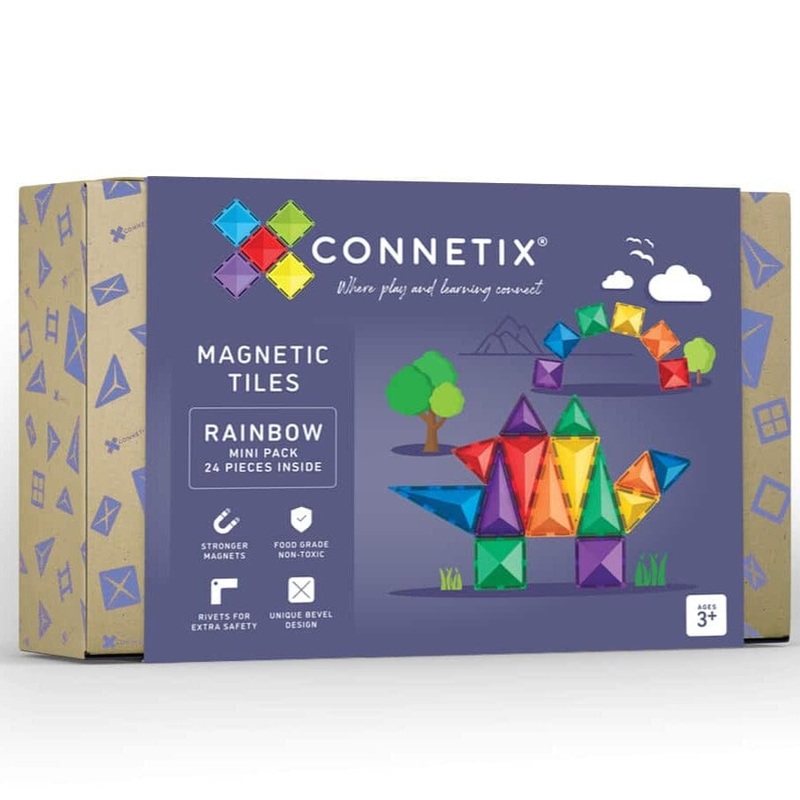 Whether you are looking for the perfect gift, curious about Connetix magnetic tiles, or wanting to expand your collection, the 24pc Rainbow Mini Pack offers exciting opportunities!