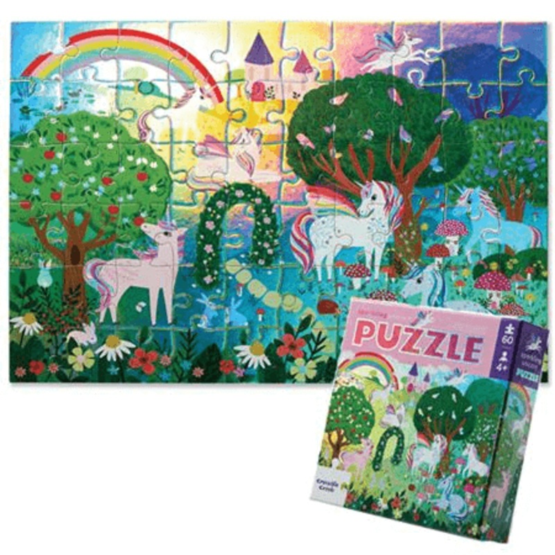 Croc Creek 60pc Foil Puzzle Sparkling UnicornRecommended for ages 4+Puzzle Size: 355.6 x 482.6mmPuzzle play encourages hand-eye coordination, fine motor skills and problem solving.Crocodile Creek offers a variety of other puzzles and shaped boxes!
