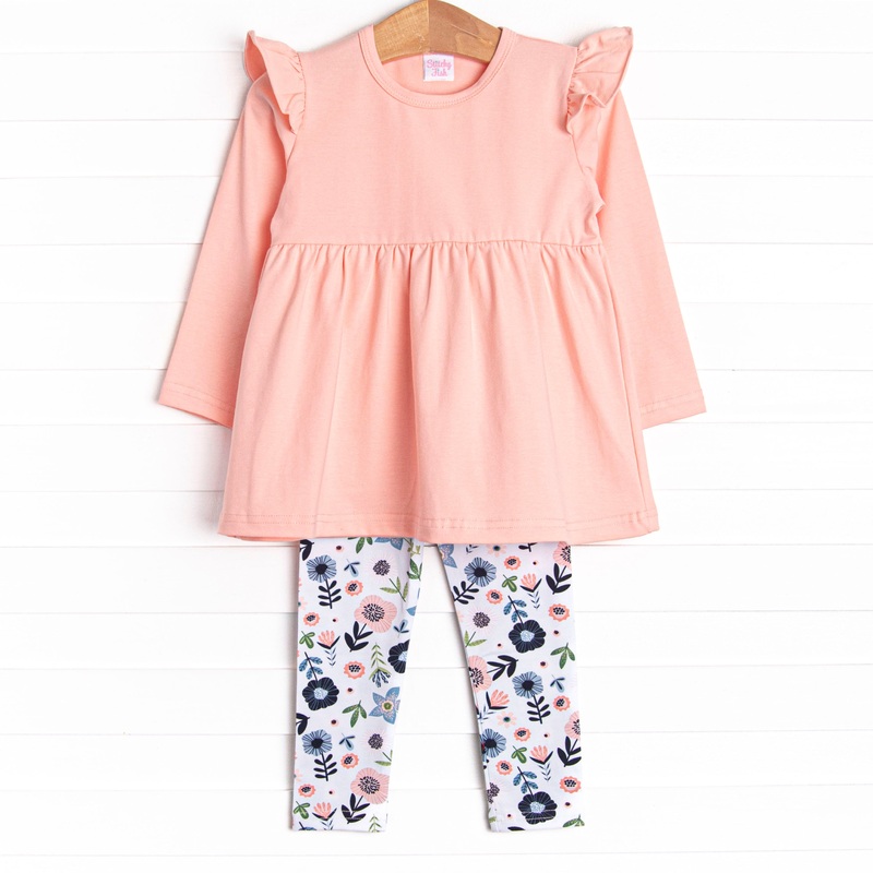 Your little one is sure to blossom in this legging set! The set features a long sleeve shirt, coordinating leggings, and soft knit material. Your little girl is going to love this set!SIZE GUIDE95% Cotton/5% Spandex