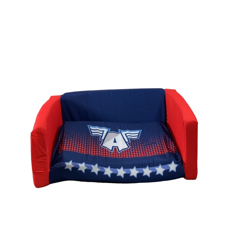 Kids can cozy up in this great seat that flips out and has a side pocket.