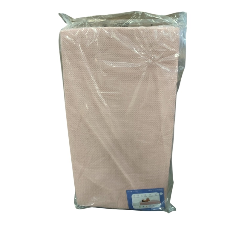 Double sided mattress for infants and toddlers with a waterproof cover for convenience.