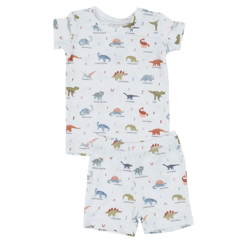 Its no surprise why Angel Dear is one of our go-to gift brands for little kids. Super soft, lightweight, and breathable.This PJ set, covered in the cutest dinosaurs and ABCs, includes both short-sleeved top and full-length bottoms.Materials: 95% viscose fr