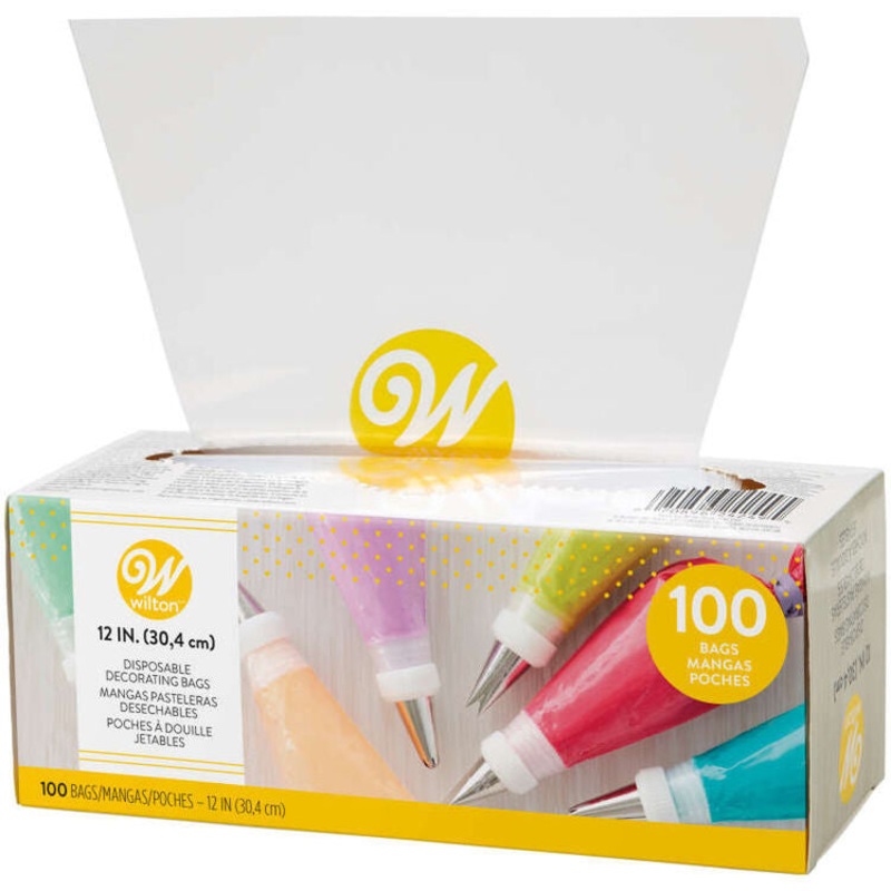 Do you love to decorate cakes, but hate dealing with the messy icing bags? These Wilton Disposable Icing Bags make clean-up go much faster! Fill them with frosting or melted chocolate, add your favorite tip, and start decorating. 100 bagsTipless12-inch siz