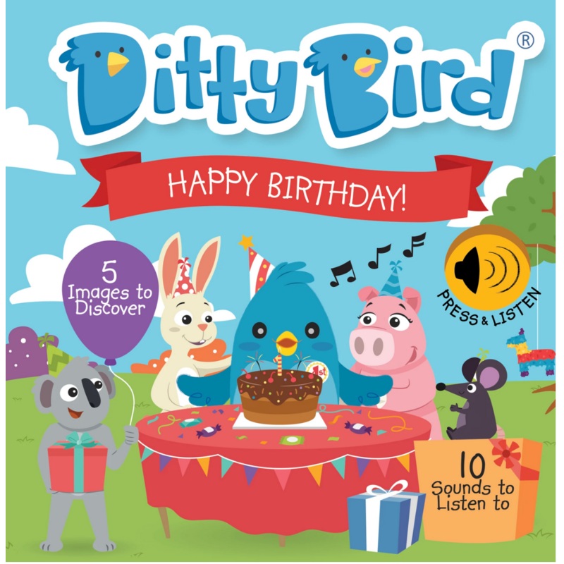 EASY, FUN, GREAT TO SING ALONG: Read, listen, and hum along as Ditty Bird celebrates his first birthday party!Includes 10 interactive buttons:Songs: Happy Birthday, Ring around the Rosy and Humpty DumptyFirst words: Hello, Thank You, 1,2,3, I Love You, Goo