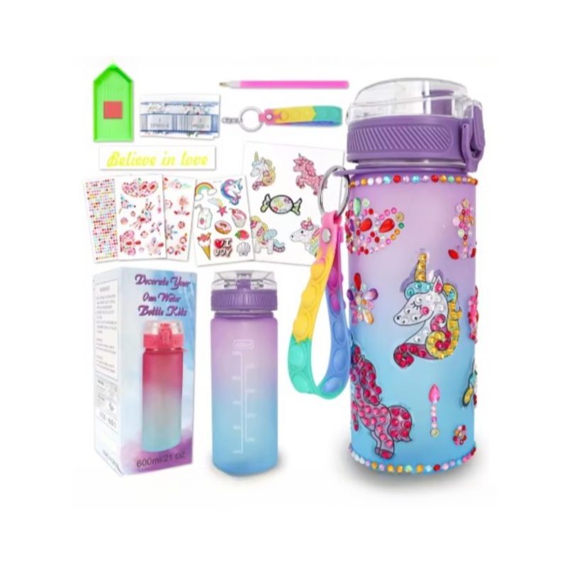 - Unleash your childs creativity with this fun DIY water bottle kit featuring unicorn and mermaid themes, complete with vibrant diamond stickers for endless decorating fun.