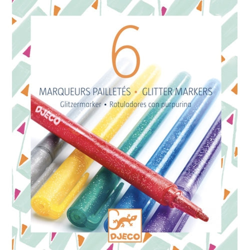 A lovely set of 6 markers from Djeco that have fun glitter effects! These sparkling, coloured felt tip pens add that extra pizazz to all your colouring and artwork projects.