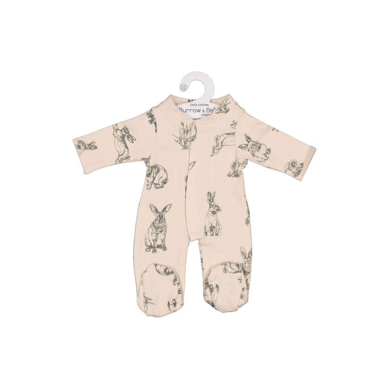 This doll's sleep suit is the cutest accessory for your little ones 38cm Miniland doll.Featuring a soft Velcro closure up the frontand in our signature burrowers print on almond, you will love this just as much as your littlie.Made from super soft 95% orga