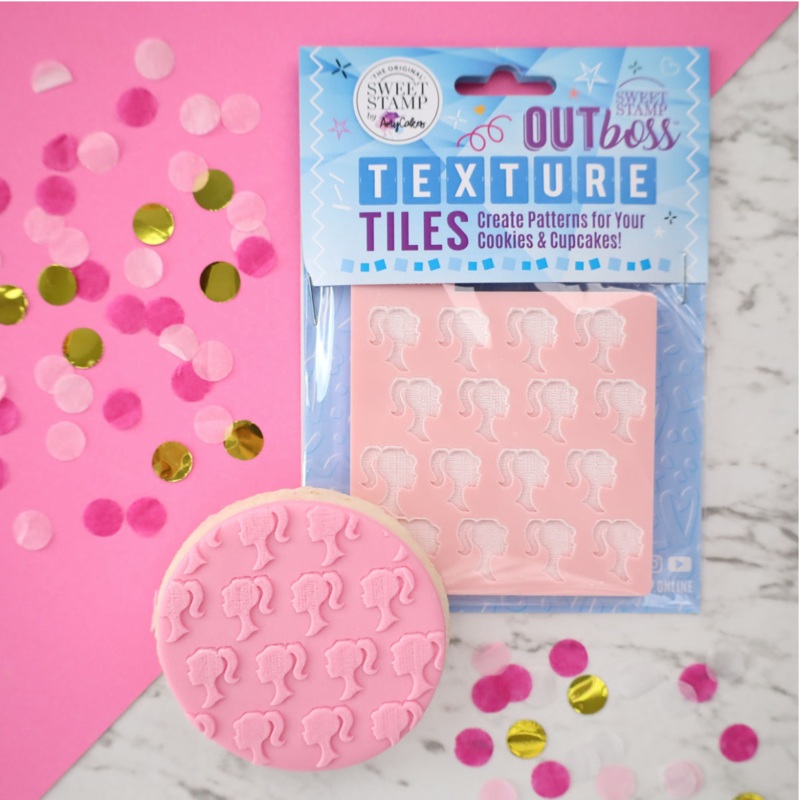 W: 4 1/2"L: 2 1/4"OutbossSTAMP N CUTTERWith SweetStamp OUTboss it's never need easier and prettier to make beautiful Toppers for your cookies and cupcakes!OUTboss allows you to create a 3D raised design on your Sugarpaste/Fondant, modelling chocolate and G