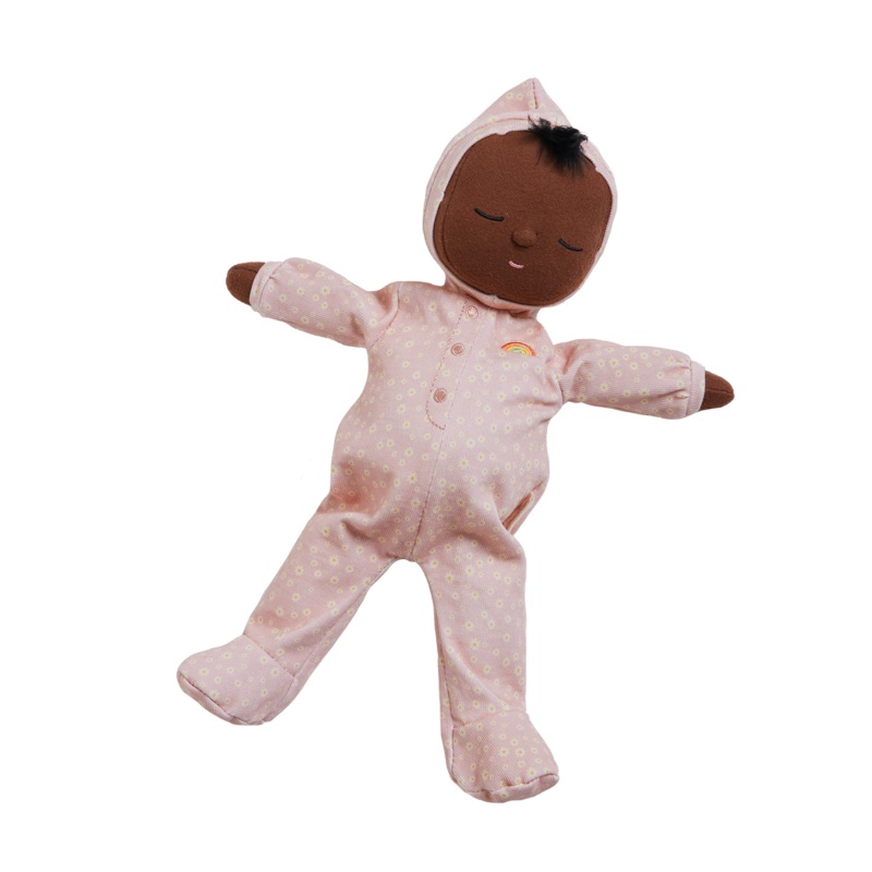 Sweetly a slumber and ready to snuggle, say hello to Dozy Dinkum Mini Daisy! This limited-edition Daydream Dozy is made from 100% Cotton printed in our vintage-inspired Daisy print. Soft and precious, Mini Daisy is made for cuddles and play and cant wait to snooze the days away with you! Mini Daisy is posable, made from super soft cotton and features the sweetest embroidered face with a little tuft of hair. Each Daydream Dozy Dinkum wears a non-removable suit complete with a rainbow right over their heart. Mini Daisy is a beautiful first gift for newborn babies or would make a lovely addition to your Dinkum Doll family for older kids too. Each Daydream Dozy arrives packaged in a soft 100% cotton bag with a matching drawstring! This bag also doubles as a handy laundry bag for your Dozy when theyre in need of a wash (make sure its a cool, gentle machine wash only!).
