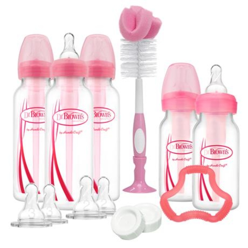 The Dr. Brown’s Options Feeding Bottles Gift Set has a vent system that is designed to grow with your baby for health benefits