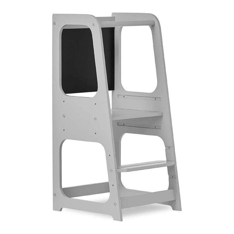 Help your little explorer reach greater heights! Here comes the Dream On Me Explora Toddler Tower a sturdy and safe wooden kitchen standing stool, designed for your toddler to sit and stand on, while observing their surroundings. This multi-purpose and ergonomically designed tower can be used in the kitchen, living room or playroom. The Dream On Me Explora Toddler Tower is thoughtfully designed with 3 built-in platform heights to keep up as your child grows! Perfect for a toddler who wants to reach for the top shelf, this tower allows your child to climb up and help you out with tasks, giving them a sense of responsibility while picking up some life skills. The back of the tower doubles up as a blackboard, creating a chalkable surface for your kid to draw and get creative on. Made with high-quality pinewood, the Dream On Me Explora Toddler Tower has an Anti-slip base and is super easy to spot or wipe clean. The tower also comes with a 1-year warranty, and is ideal for kids between 18 months to 3 years of age with a maximum weight capacity of 150 lbs.