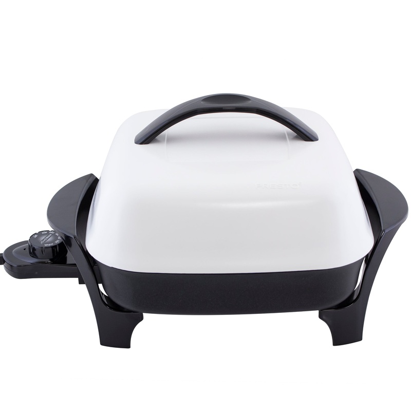 Presto Electric skillet that's great for cooking breakfast, lunch, and dinner. This 11-inch electric skillet can roast, fry, grill, stew, make casseroles, and more. Saves energy, more efficient than a stovetop burner or oven.120 volts AC, 1000 wattsControl