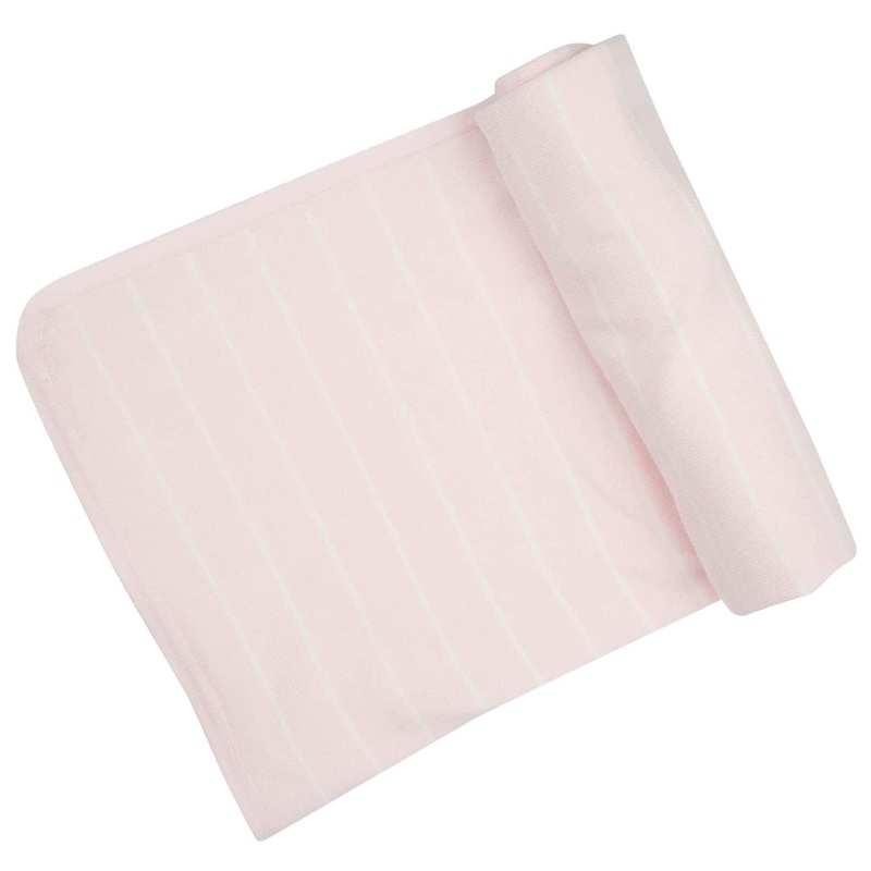 Angel Dear is one of our go-to brands for baby shower and new baby gifts. This super soft sweater knit blanket is made of 100% cotton with rounded corners and is a perfect year-round gift for new babies. This classicpink and white striped blanket pairs wel