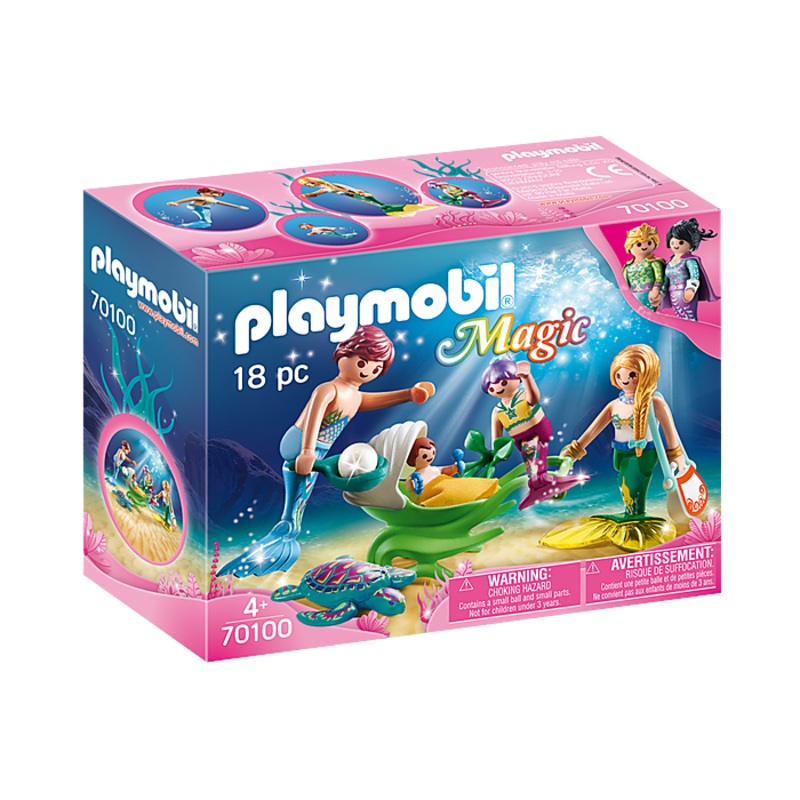Take a walk with the Family with Shell Stroller The baby happily coos in the stroller while the turtle floats nearby For even more fun combine this set with the rest of the PLAYMOBIL Magical Mermaids theme.Figures: 1 mermaid, 1 merman, 1 mermaid, 1 sea bab