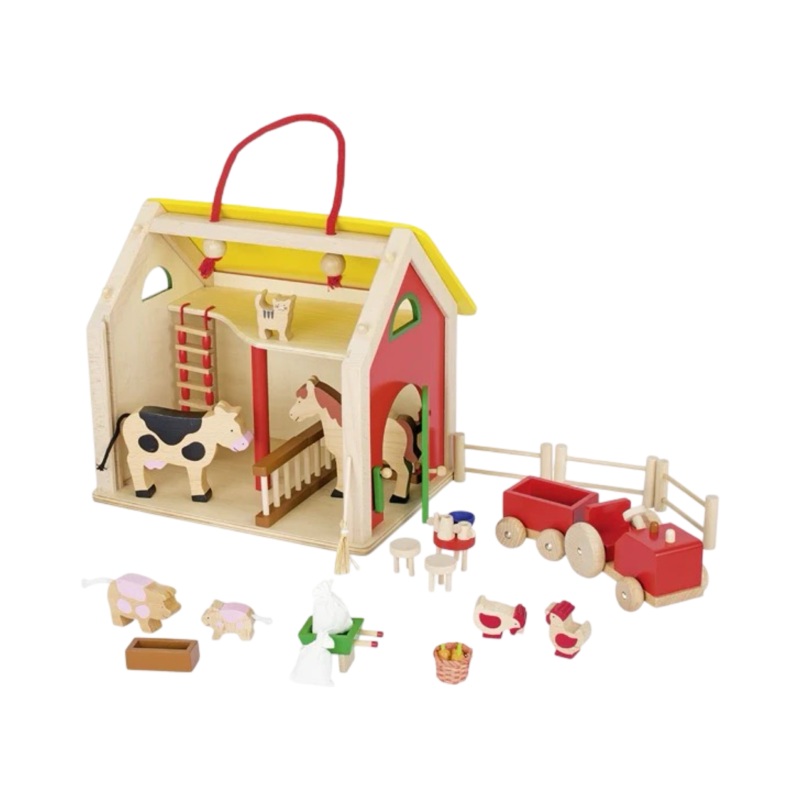 The farmhouse with the practical carrying handle makes it easy to take along. Half of the roof and the side wall are removable which allows very good playing possibilities.Age recommendation: 3+Material: Wood, materialNumber of Parts: 31Measurement: 33 x 2