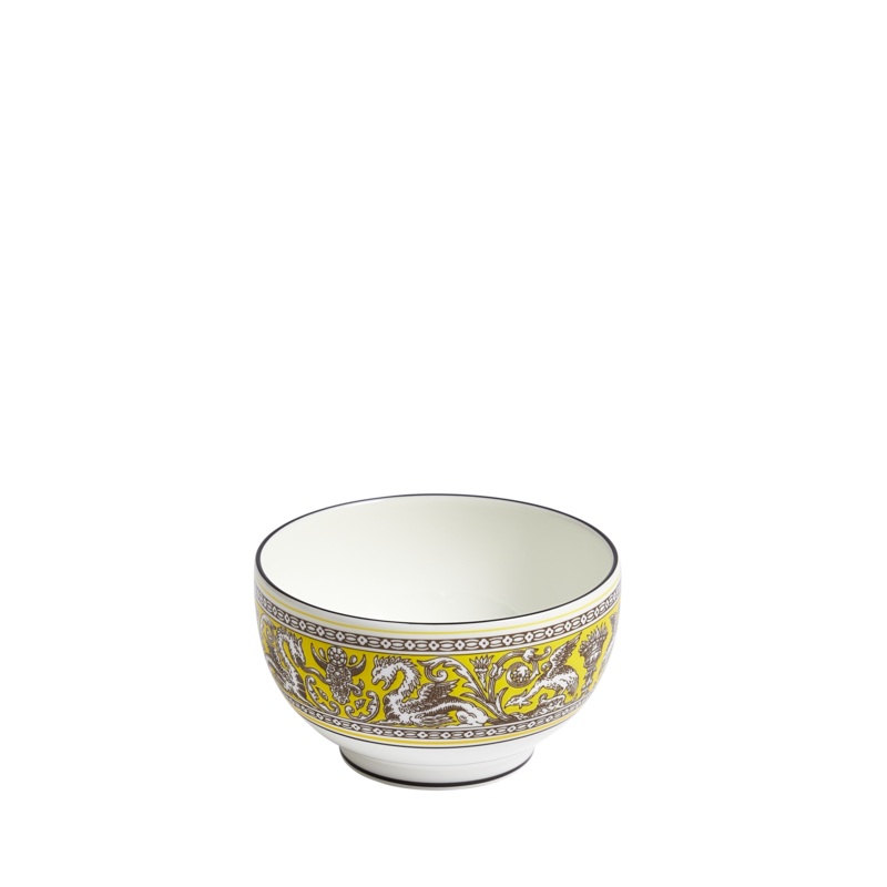 For over 260 years, Wedgwood has produced timeless, eclectic stoneware and china that has graced the tabletops of kings, queens, and some of the finest dining rooms in the world. From its factory inBarlaston, England, the brands signature dishware and household items are thrown, modeled, and decorated by artisans who spend a lifetime mastering their craft. First introduced in 1874, the Florentine collection has mythical creatures roaming amidst fantastic flora in delicately hand-rendered motifs set against the clarity of white, fine bone china. The Florentine Citron Rice Bowl is ideal for a refined meal and tablescape.