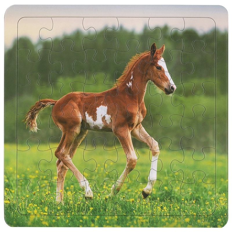 This Frisky Foal 36-Piece Puzzle CH8424 is sure to bring fun and entertainment for your child. It features a frame tray and an adorable foal frolicking in a field.