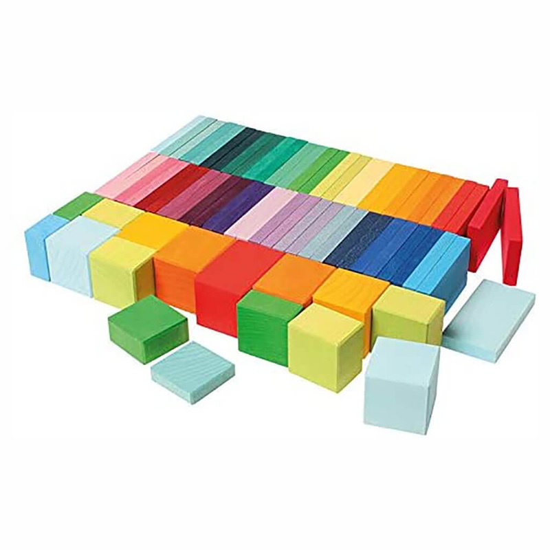 Limitless designs! The 29 color chart pairs open up a world of creativity and help children develop a new appreciation for color. The children can test the domino effect, match and name the colors and build amazing towers, buildings, castles and more! Also a wonderful accessory to all of our building sets. By building and playing with these blocks, children develop fine motor skills and spatial thinking skills.