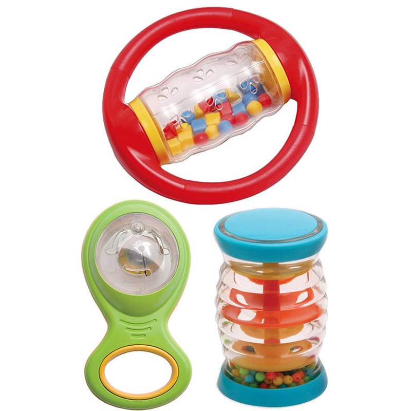 A delightful music band for the young musician. Perfect colorful rattles designed to develop early music and rhythm skills while incorporating the finest and safest materials. Ages 6+ months.