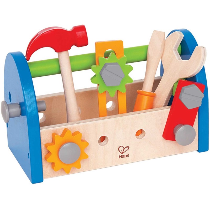 Fix-It Tool Box by Hape has nuts, bolts, and all the tools little builders need to tinker. Conveniently packed in a ready-for-action case. 30-piece set includes a vice, wrench, ruler, hammer, screwdriver, plenty of screws and wood pieces to practice building skills. Your little one can pound to their delight and measure and tighten things too. Durable child safe paint finish and solid wood construction are hallmarks of Hape toys. Hape’s toys stimulate children through every stage of development and help nurture and develop their natural abilities. All Hape products sold in North America meet or exceed all applicable safety standards.