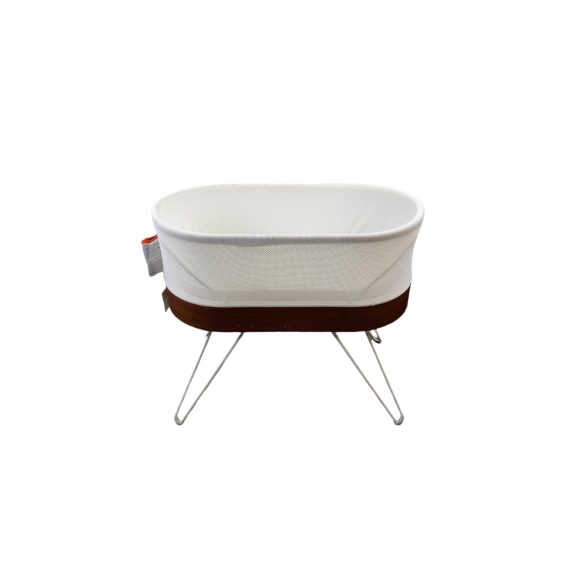 The SNOO is a baby bassinet that helps your baby sleep better! It combines safe swaddling with motion and soothing white noise to help calm your baby back to sleep.