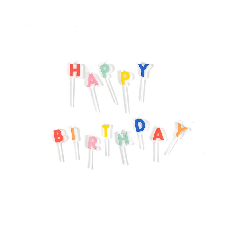A simple way to turn a cake into a birthday delight is with these mini candles. They spell out the words “Happy Birthday” in a colorful way.