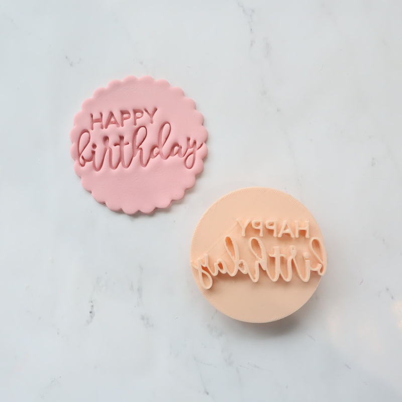 By custom cookie cuttersAll embossers have a mini handle to make easier to press down and lift upThis embosser design has two size options, 40mm or 60mm.HALF NON-CURSIVE ||| HALF CURSIVECan be used on fondant, gum paste, or doughHand wash onlyDO NOT WASH I