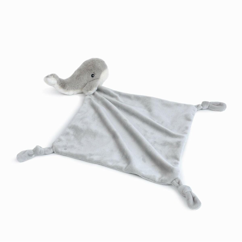 In the quiet corners of baby's room, where moonbeams tiptoe and stuffed animals whisper secrets, lies the cherished Haven Whale blankie. Its softness is like a lullaby, cradling dreams and soothing little hearts.100% polyester baby security blanketFeatures
