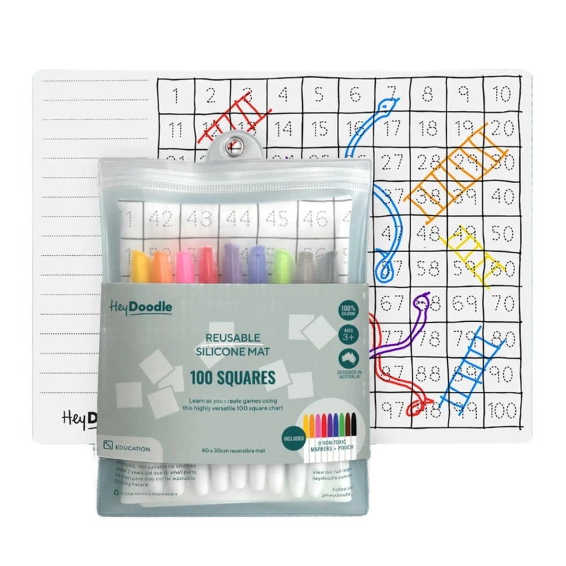 HeyDoodle – Classic Colouring & Doodle Mat | 100 Squares
