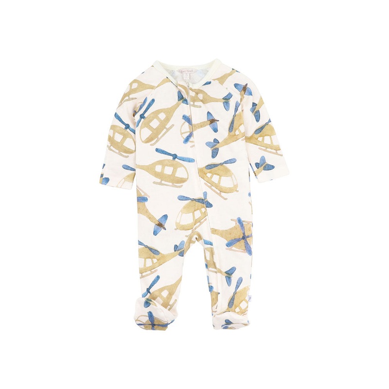 Keep your little one warm and cozy this winter in this long sleeve cotton romper featuring a cute helicopter print with contrast binding, a front zip for ease of dressing and nappy changes, enclosed feet and fold over mittens.