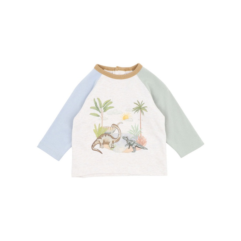 Bring some fun prints to your little ones wardrobe with this long sleeve tee. Featuring a cute dinosaur print with embroidery on the front, contrast coloured sleeves and a back neck button opening, its the one piece you can't go past this Winter. Garment p