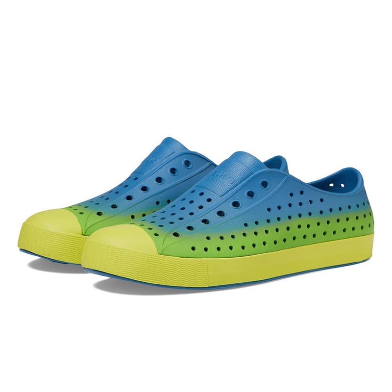 The sweetest pair of Jeffersons are now in a bold ombre print. These shoes boast the same water-friendly, shock-absorbent, odor-resistant, easy-to-clean qualities as our classic Jefferson. But are made with Sugarlite, our sugarcane-based EVA material that