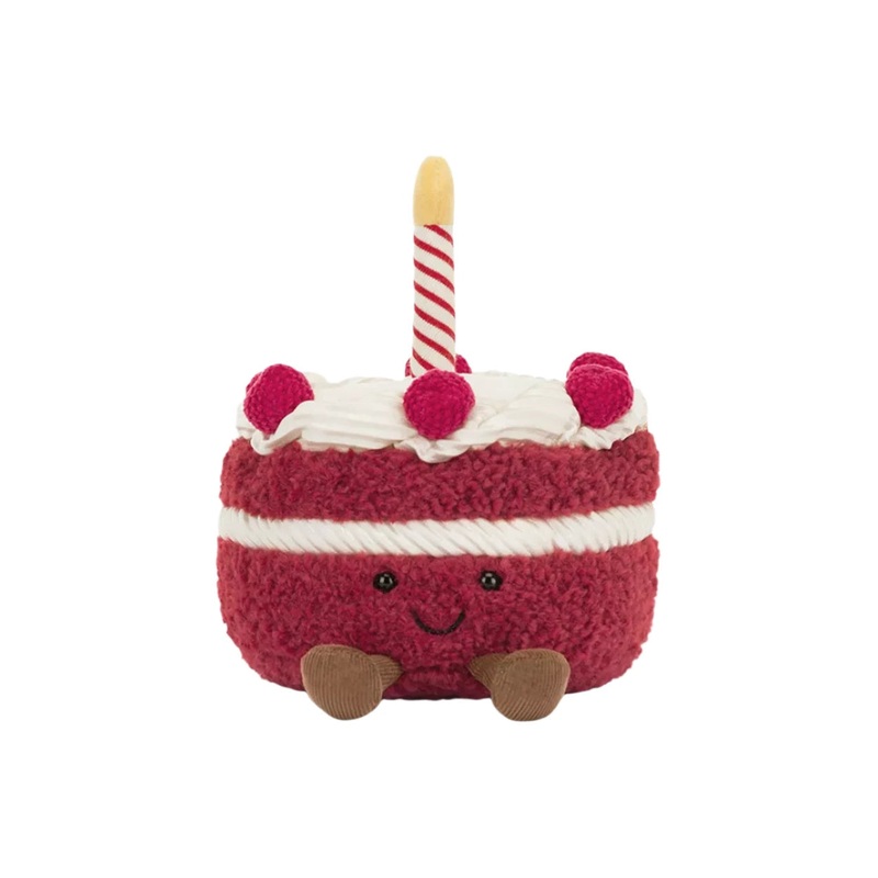 Amuseables Cheri Cake has been baked with love. This red velvet sweetie has a base of bold red tousled fur, with cream textured icing. Finished with textured berries and topped with a striped, lit candle, this smiling sponge is the perfect sweet treatRecom